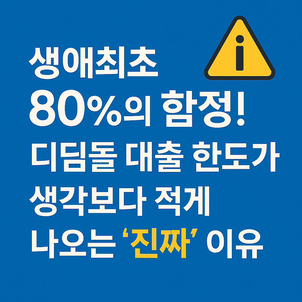 "디딤돌은 DSR 안 보니까 많이 나오겠지?"라고 생각하면 오산입니다. 대신 *DTI(총부채상환비율) 60%*를 봅니다. 기존에 차 할부나 학자금 대출 등 기대출이 많다면, 소득 대비 원리금 상환액이 높게 잡혀 한도가 깎입니다. 특히 신용대출이 있는 분들은 대출 실행 전 반드시 정리해야 한도를 풀(Full)로 받을 수 있습니다.